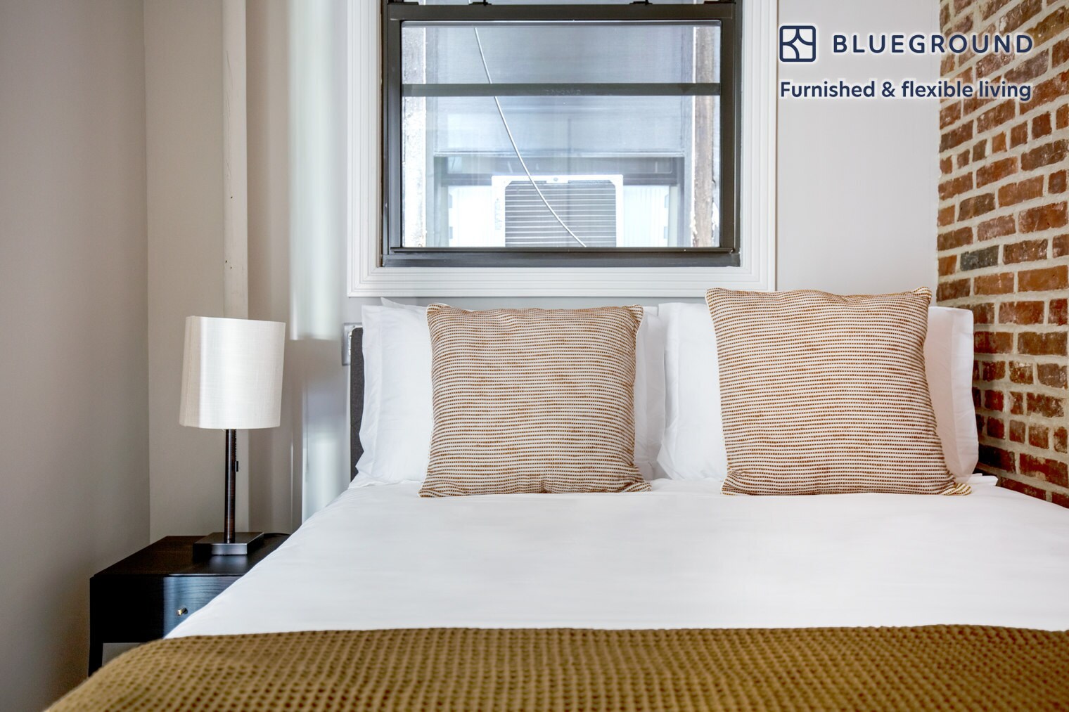 Show up and start living from day one in New York with this lovely two bedroom Blueground apartment. You’ll love coming home to this thoughtfully furnished, beautifully designed, and fully equipped Hell's Kitchen home. (ID #NYC909) The advertised rate of $5,420/month is the lowest available price, based on a 12 month(s) stay with a move-in date of May 1, 2026. Rates vary depending on the duration of stay, season, and other parameters. For exact pricing and additional pricing components, please visit our website and enter your desired move-in and move-out dates. The rate is applicable when billed upfront; it can be higher if billed in multiple payments. Brokers are welcome to reach out. Were you looking for an unfurnished lease? Try Blueground instead and upgrade from unfurnished to furnished living: - Furnished at rates comparable to unfurnished - No setup or furniture costs - save thousands - Move-in ready - save time, just bring your suitcase Designed with you in mind Gorgeous furniture, fully equipped kitchen, smart TV, and a premium wireless speaker are just a few of the amenities you’ll find inside this two bedroom apartment. Ideally located in New York, you’ll find a lot to love outside as well. When you’re ready to relax, you’ll be happy to discover every Blueground bedroom comes with superior quality mattresses, luxury linens, and cozy towels. We handle everything so you can simply show up and start living. This apartment also offers in-apartment laundry. Sleeping arrangements Queen Bed, 63in/160cm Queen Bed, 63in/160cm Amenities Building amenities unique to this two bedroom apartment include an on-site: - Dryer - Washing machine Arrival and ongoing support The entire apartment is yours to enjoy! Throughout your stay, you’ll have access to our Client Experience team through the Blueground App. You can schedule additional cleanings, submit maintenance requests, and view our neighborhood recommendations with just a few taps. We’ll share all details upon confirmation of your stay. Other things to note This Blueground apartment has flexible lease options, allowing you to book it for one month, a year, or more. Please keep in mind that this is a walk up building. Brokes CYOF. We take great pride in ensuring every photo displayed is shot in our own units with our actual furnishings. That said, we regularly refresh our decor and furniture arrangement, which may differ from what’s pictured. [SI]