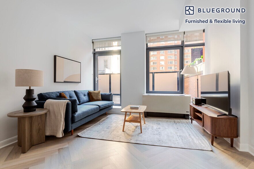 Show up and start living from day one in New York with this sophisticated one bedroom Blueground apartment. You’ll love coming home to this thoughtfully furnished, beautifully designed, and fully equipped Murray Hill home. (ID #NYC2061) The advertised rate of $5,410/month is the lowest available price, based on a 12 month(s) stay with a move-in date of April 22, 2026. Rates vary depending on the duration of stay, season, and other parameters. For exact pricing and additional pricing components, please visit our website and enter your desired move-in and move-out dates. The rate is applicable when billed upfront; it can be higher if billed in multiple payments. Brokers are welcome to reach out. Were you looking for an unfurnished lease? Try Blueground instead and upgrade from unfurnished to furnished living: - Furnished at rates comparable to unfurnished - No setup or furniture costs - save thousands - Move-in ready - save time, just bring your suitcase Designed with you in mind As with any Blueground apartment, you’ll find a thoughtfully designed space complete with beautiful furniture and a fully equipped kitchen in this one bedroom property. And, thanks to our superior quality mattresses, fully stocked linens, and towels, you can relax knowing you’ll always feel comfortably at home. When you’re ready for some fun, you can take in the New York vibes or bring the entertainment to you with the premium wireless speaker or smart TV. This apartment also offers in-apartment laundry. Sleeping arrangements Queen Bed, 63in/160cm Amenities Building amenities unique to this one bedroom apartment include an on-site: - Doorman - Dryer - Elevator - Washing machine - Lounge - Rooftop Arrival and ongoing support The entire apartment is yours to enjoy! Throughout your stay, you’ll have access to our Client Experience team through the Blueground App. You can schedule additional cleanings, submit maintenance requests, and view our neighborhood recommendations with just a few taps. We’ll share all details upon confirmation of your stay. Ideally Located This furnished apartment is located in Murray Hill, a lively Midtown neighborhood. The active nightlife scene makes it increasingly ideal for youngsters and recent graduates. Simultaneously, families are relocating here as there are many good schools in close proximity. Murray Hill offers various destinations for culture-lovers. Namely, the New York Public Library and Bryant Park draw residents in from the rest of the city. Grand Central Station is only 5 minutes from Murray Hill by subway. Other things to note Building amenities may have an extra cost. This Blueground apartment has flexible lease options, allowing you to book it for one month, a year, or more. Brokes CYOF. We take great pride in ensuring every photo displayed is shot in our own units with our actual furnishings. That said, we regularly refresh our decor and furniture arrangement, which may differ from what’s pictured. [SI]