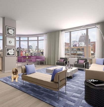 Just like Soho, 55 Thompson® is a one-of-a kind, intimate, boutique rental building with only 38 residences, offering a level of service, amenities, room sizes and finishes that surpass any rental building in SoHo and indeed in all Downtown New York. The apartments feature all of the best features of Soho loft design and lifestyle – flowing expanses of open plan space, 10 foot ceiling heights, walls of windows and limed 4 inch solid white oak floors. Many feature glowing gas fireplaces and private balconies or grand walk-out terraces. Top floor penthouses have skylights. The great rooms offer a surplus of space to relax and entertain in style. The open kitchens featuring rift cut limed white oak cabinetry with insert doors thick slabs of rainforest polished stone countertops, wheat colored Viscaya polished glass tile backsplash, Kindred 30 inch stainless steel under mount sink with stainless steel, Whitehaus pullout spray/steam faucets, pull out cabinets with double trash bin for recycling, wood paneled built in 30 inch Subzero refrigerator/freezer, 30 inch stainless steel Bertazzoni gas range, Bosch stainless steel dishwasher, LG built in stainless steel microwave oven, oversized limed white oak vanities with polished Silver, Travertine slab countertops and double undermount sinks. The luxurious baths feature triple-view mirrored medicine cabinets with integrated lighting, Iridian Metalwood porcelain wall tiles, Steelworks Bronzo porcelain floor tiles, Kohler Maestro 5’-6” under mount soaking tub with polished Silvern Travertine slab tub decks, separate stall showers with frameless glass shower doors, Toto Aqua dual flush elongated toilets with soft close seats, polished chrome Kohler stillness faucets, shower and tub, spouts and hand showers. The building also features a fitness center and a fully landscaped terrace on the 2nd floor for residents.