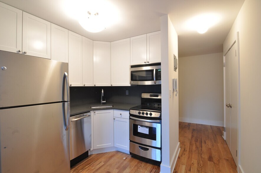 Large, newly renovated Apartments in a well maintained Elevator/Laundry building. Gourmet kitchen equipped with Caesarstone countertops, stainless steel appliances including dishwasher. Queen size bedrooms. Great closet space. Hardwood floors and high ceilings throughout. Juliet balcony overlooking private garden.