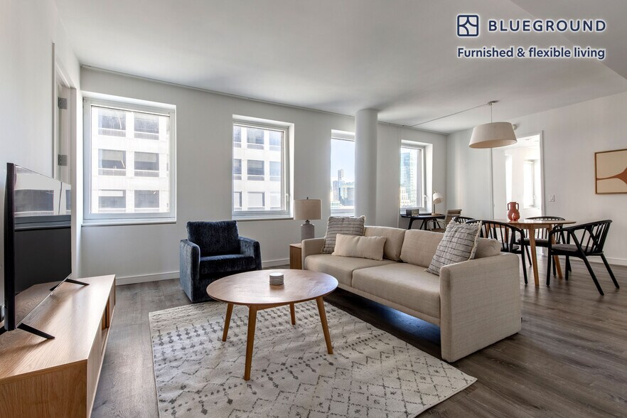 Discover the best of New York, with this two bedroom apartment in Midtown South with high floor views over the city. It’ll be easy to simply show up and start living in this furnished apartment with its fully equipped kitchen, living room, and our dedicated, on-the-ground support. (ID #NYC1393) The advertised rate of $7,980/month is the lowest available price, based on a 12 month(s) stay with a move-in date of July 16, 2026. Rates vary depending on the duration of stay, season, and other parameters. For exact pricing and additional pricing components, please visit our website and enter your desired move-in and move-out dates. The rate is applicable when billed upfront; it can be higher if billed in multiple payments. Brokers are welcome to reach out. Were you looking for an unfurnished lease? Try Blueground instead and upgrade from unfurnished to furnished living: - Furnished at rates comparable to unfurnished - No setup or furniture costs - save thousands - Move-in ready - save time, just bring your suitcase Designed with you in mind Gorgeous furniture, fully equipped kitchen, smart TV, and a premium wireless speaker are just a few of the amenities you’ll find inside this two bedroom apartment. Ideally located in New York, you’ll find a lot to love outside as well. When you’re ready to relax, you’ll be happy to discover every Blueground bedroom comes with superior quality mattresses, fully stocked linens, and cozy towels. We handle everything so you can simply show up and start living. This apartment also offers in-apartment laundry. Sleeping arrangements Queen Bed, 63in/160cm Queen Bed, 63in/160cm Amenities Building amenities unique to this two bedroom apartment include an on-site: - Doorman - Dryer - Elevator - Washing machine - Pets allowed Arrival and ongoing support The entire apartment is yours to enjoy! Throughout your stay, you’ll have access to our Client Experience team through the Blueground App. You can schedule additional cleanings, submit maintenance requests, and view our neighborhood recommendations with just a few taps. We’ll share all details upon confirmation of your stay. Ideally Located This furnished apartment is located in Midtown South, the city’s high tech sector. Midtown South is generally used to refer to the portion of Midtown that is below 42nd Street. This central location allows residents to be just a short walk or ride away from some of the city's most famous landmarks and institutions. For instance, the Main Branch of the New York Public Library and the iconic Empire State Building. For a breath of fresh air, visit Bryant Park - known as Manhattan’s Town Square. The gorgeous residential high-rises in this neighborhood offer spectacular city views. Other things to note Building amenities may have an extra cost. This Blueground apartment has flexible lease options, allowing you to book it for one month, a year, or more. Pets are welcome, though weight limits and breed restrictions apply and may incur fees. Brokes CYOF. We take great pride in ensuring every photo displayed is shot in our own units with our actual furnishings. That said, we regularly refresh our decor and furniture arrangement, which may differ from what’s pictured. [SI]