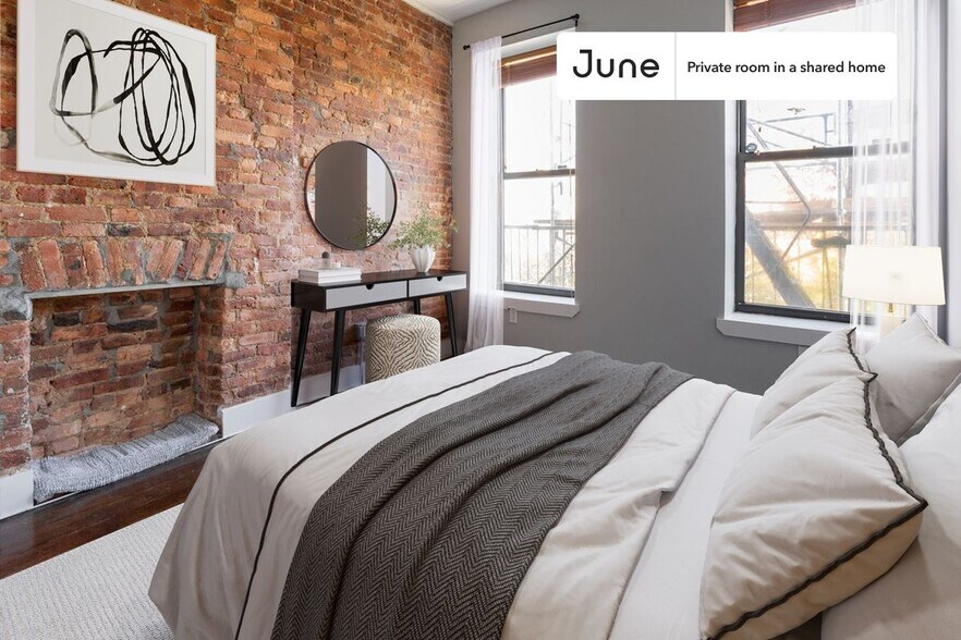Room for rent: PLEASE NOTE: This is a private room in a shared apartment. You will have your own bedroom and shared common areas (kitchen, bathroom, etc.) with other residents. Full bedroom in a 4 bedroom / 2 bathroom apartment! This Full room in Bushwick is available on a 12 month lease or a flexible short term (31 to 364 days) lease. You pick your custom start and end date. Monthly rent rate is determined by furnishing preference, move-in date and move-out date. Speak to a June representative for recommendations on the best stay duration for the lowest rate. Amenities of this home: Dishwasher, Furnished Common Areas, Wi-Fi - Paid separately (High-Speed), Guarantors Allowed, 32-inch Flat-Screen TV, Laundry in home (free), AC (Common space), Living area, Hardwood Flooring, Microwave, Oven, Refrigerator, also, this unit is conveniently located, several local parks, restaurants and bars are just minutes away. About June Homes: Welcome to the easiest rental experience of your life. Rent furnished or unfurnished apartments on a 12 month lease or a flexible short term (31 to 364 days). As a resident, you’ll have access to 24/7 support and monthly cleanings of the home’s shared spaces. Sign up now to apply online for your next home with June. Brokers welcome! Contact us for more details. Speak to a June representative for recommendations on the best stay duration for the lowest rate, and learn more about this home on the June website. Use this listing ID when speaking to June team: #1628 C