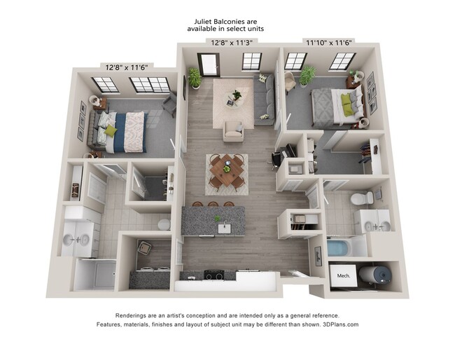 Unit I- Luxury 2 Bedroom 2 Bathroom with Juliet Balcony (55+)