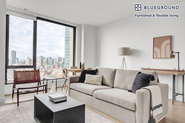 Show up and start living from day one in New York with this charming two bedroom Blueground apartment. You’ll love coming home to this thoughtfully furnished, beautifully designed, and fully equipped Long Island City home with stunning high floor views over the city. (ID #NYC674) The advertised rate of $6,710/month is the lowest available price, based on a 11 month(s) and 29 day(s) stay with a move-in date of February 7, 2030. Rates vary depending on the duration of stay, season, and other parameters. For exact pricing and additional pricing components, please visit our website and enter your desired move-in and move-out dates. The rate is applicable when billed upfront; it can be higher if billed in multiple payments. Brokers are welcome to reach out. Were you looking for an unfurnished lease? Try Blueground instead and upgrade from unfurnished to furnished living: - Furnished at rates comparable to unfurnished - No setup or furniture costs - save thousands - Move-in ready - save time, just bring your suitcase Designed with you in mind As with any Blueground apartment, you’ll find a thoughtfully designed space complete with beautiful furniture and a fully equipped kitchen in this two bedroom property. And, thanks to our superior quality mattresses, luxury linens, and towels, you can relax knowing you’ll always feel comfortably at home. When you’re ready for some fun, you can take in the New York vibes or bring the entertainment to you with the premium wireless speaker or smart TV. This apartment also offers in-apartment laundry. Sleeping arrangements King Bed, 70.8in/180cm Queen Bed, 63in/160cm Amenities Building amenities unique to this two bedroom apartment include an on-site: - Doorman - Dryer - Elevator - Washing machine - Pets allowed Arrival and ongoing support The entire apartment is yours to enjoy! Throughout your stay, you’ll have access to our Client Experience team through the Blueground App. You can schedule additional cleanings, submit maintenance requests, and view our neighborhood recommendations with just a few taps. We’ll share all details upon confirmation of your stay. Ideally Located This furnished apartment is located in Long Island City, a neighborhood with amazing East River views. Nowadays, the area has become one of the best downtown Manhattan alternatives. Here, locals can enjoy a mix of activities from shopping on Jackson Avenue to indoor arts entertainment at MoMA PS1. Long Island City is also filled with modern public green spaces ideal for a stroll or jog. Grand Central Station is only a 20-minute subway ride away. Other things to note Building amenities may have an extra cost. This Blueground apartment has flexible lease options, allowing you to book it for six months, a year, or more. Pets are welcome, though weight limits and breed restrictions apply and may incur fees. Brokes CYOF. We take great pride in ensuring every photo displayed is shot in our own units with our actual furnishings. That said, we regularly refresh our decor and furniture arrangement, which may differ from what’s pictured. [SI]