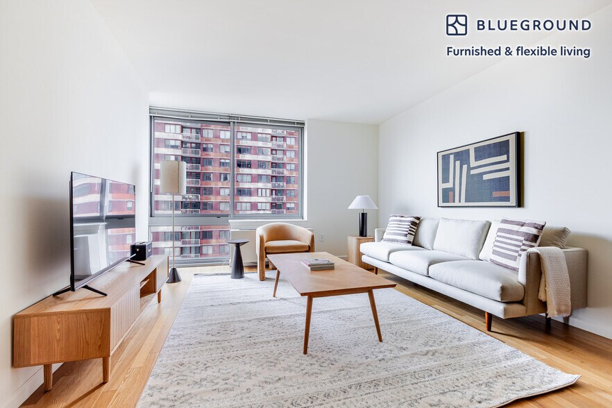 Feel at home wherever you choose to live with Blueground. You’ll love this roomy Long Island City furnished one bedroom apartment with its modern decor, fully equipped kitchen, and cheery living room with great high floor views. Ideally located, you’re close to all the best that New York has to offer! (ID #NYC1787) The advertised rate of $5,390/month is the lowest available price, based on a 12 month(s) stay with a move-in date of May 4, 2026. Rates vary depending on the duration of stay, season, and other parameters. For exact pricing and additional pricing components, please visit our website and enter your desired move-in and move-out dates. The rate is applicable when billed upfront; it can be higher if billed in multiple payments. Brokers are welcome to reach out. Were you looking for an unfurnished lease? Try Blueground instead and upgrade from unfurnished to furnished living: - Furnished at rates comparable to unfurnished - No setup or furniture costs - save thousands - Move-in ready - save time, just bring your suitcase Designed with you in mind As with any Blueground apartment, you’ll find a thoughtfully designed space complete with beautiful furniture and a fully equipped kitchen in this one bedroom property. And, thanks to our superior quality mattresses, fully stocked linens, and towels, you can relax knowing you’ll always feel comfortably at home. When you’re ready for some fun, you can take in the New York vibes or bring the entertainment to you with the premium wireless speaker or smart TV. This apartment also offers in-apartment laundry. Sleeping arrangements Queen Bed, 63in/160cm Amenities Building amenities unique to this one bedroom apartment include an on-site: - Doorman - Dryer - Elevator - Swimming pool - Washing machine - Lounge - Pets allowed - Playroom Arrival and ongoing support The entire apartment is yours to enjoy! Throughout your stay, you’ll have access to our Client Experience team through the Blueground App. You can schedule additional cleanings, submit maintenance requests, and view our neighborhood recommendations with just a few taps. We’ll share all details upon confirmation of your stay. Ideally Located This furnished apartment is located in Long Island City, a neighborhood with amazing East River views. Nowadays, the area has become one of the best downtown Manhattan alternatives. Here, locals can enjoy a mix of activities from shopping on Jackson Avenue to indoor arts entertainment at MoMA PS1. Long Island City is also filled with modern public green spaces ideal for a stroll or jog. Grand Central Station is only a 20-minute subway ride away. Other things to note Building amenities may have an extra cost. This Blueground apartment has flexible lease options, allowing you to book it for one month, a year, or more. Pets are welcome, though weight limits and breed restrictions apply and may incur fees. Brokes CYOF. We take great pride in ensuring every photo displayed is shot in our own units with our actual furnishings. That said, we regularly refresh our decor and furniture arrangement, which may differ from what’s pictured. [SI]