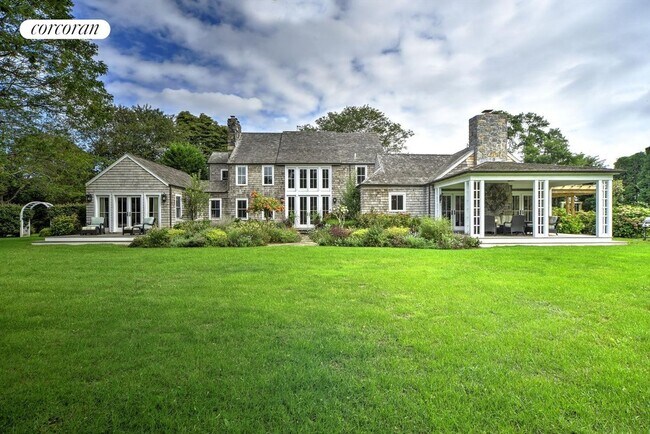 A long, secluded drive leads to a lushly landscaped 4.6 acre Sagaponack retreat. Surrounded by farm fields and vineyards, this newly renovated expanded farm-style Traditional offers 4 bedrooms, 4.5 baths, a separate 2-bedroom, 1-bath guest house, a heated gunite pool and sunken tennis court. Wonderful flowing entertaining spaces provide elegant dining indoors as well as alfresco. A great room with fireplace, gourmet kitchen, and a cozy den with stone fireplace makes this property truly one the most magnificent in all of the Hamptons.