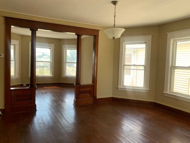 Welcome to this recently renovated 2nd floor apartment featuring hardwood floors throughout, freshly painted, original charm such as built-in cabinets/hutch and pillars. Large living room with lots of windows and natural light. Walk-in storage closet and access to your front balcony. Open Dining room perfect for entertaining. Spacious eat in kitchen with plenty of cabinets, counter top and walk in pantry. 3 bedrooms. 1 Full bath with ceramic tile floor. Washer and dryer hook ups. Tenants responsible for gas, electric, cable and internet. Landlord responsible for city water, sewer, trash removal, lawn care and snow removal. No pets allowed, sorry!
