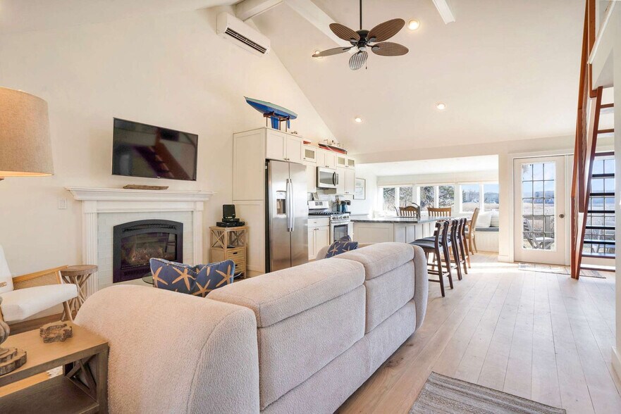 The advertised rate of $6,503/month is the lowest available price, based on a 1 month(s) stay with a move-in date of June 1, 2026. Rates vary depending on the duration of stay, season, and other parameters. For exact pricing and additional pricing components, please visit our website and enter your desired move-in and move-out dates. The rate is applicable when billed upfront; it can be higher if billed in multiple payments. Feel at home in this 2-bedroom cottage directly across from Wading River beach on Long Island's North Shore. This home features an open-plan living area with vaulted ceilings, a modern kitchen, and a screened porch. Walk to the sand in under two minutes. The main level opens into a single living, dining, and kitchen area under vaulted ceilings with exposed beams. A gas fireplace anchors the living room (currently non-operational). The kitchen has stainless steel appliances, granite countertops, and a four-seat island bar. The screened porch runs the width of the front of the house with direct sightlines to the beach and the Long Island Sound. The primary bedroom is on the main level with a queen bed, wall-mounted TV, and access to the porch. The bathroom has a soaking tub, glass-enclosed shower, and marble tile throughout. Upstairs, a loft bedroom with twin beds and sloped ceilings serves as the second sleeping area. Outside, a private deck provides additional seating. The property includes a detached garage and private driveway parking. Pets are welcome with a standard fee of $200 per pet per stay; an additional $100 may apply for dogs that shed excessively. Near Wildwood State Park, local farms, and North Fork wineries. Nearby attractions include The Barn of Wading River (0.9 miles), Bakewicz Farms (2.1 miles), Wildwood State Park (2.9 miles), The Shoppes at East Wind (2.9 miles), and Lewin Farms (3.3 miles). A car is recommended, as the property is residential with limited public transit. The primary renter must be 25 or older. Quiet hours are observed between 10 pm and 8 am. For stays over 21 days, utility costs beyond the initial charged amount are the guest's responsibility. For reservations of 29 nights or more, a refundable deposit is collected prior to arrival. A one-month minimum stay is required. [SI]