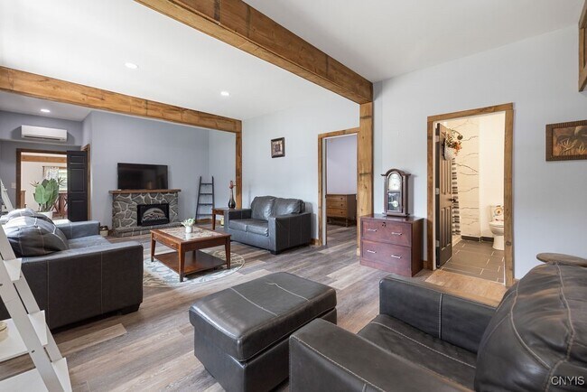 Beautifully crafted custom home available for a one-year lease,set on over 5 peaceful acres with a spring-fed pond perfect for fishing,swimming,and relaxing. Built just four years ago,this 3-bedroom,1-bath home features rustic wood trim,luxury vinyl plank flooring,and an open-concept living space ideal for entertaining. The chef’s kitchen opens to a custom dining area with French doors leading to the side yard overlooking the pond—perfect for enjoying the natural surroundings and abundant wildlife. Designed for comfort and efficiency,the home includes radiant heated flooring with zoned heat,foam insulation,a metal roof,and all new doors and windows. All appliances are included,along with a new well pump and 1,000-gallon septic system. Washer and dryer hookups are located on the first floor. The property also features a generator hookup and exterior RV plug. A perfect blend of country charm and modern convenience,this home offers privacy and versatility just minutes from town. One-year lease term. Come check out this perfect rental opportunity. Rent includes all utilities