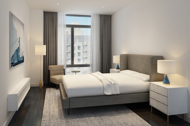 This gorgeous apartment at J&J Tower is a must see! Located at 46-02 70th Street, Woodside, NY, this brand new building was completed in July 2020 and is accepting new tenants. The impressive 9-story building features 74 residences, ranging from studio, 1 bedroom, and 2 bedrooms. Every unit is equipped with large sunlit windows, smooth dark wood floors, a private balcony, warm lighting, split wall unit HVAC, and a dishwasher, refrigerator, and oven. J&J Tower is also pleased to offer you various convenient amenities, including an on-site laundry room, a gorgeous roof terrace for relaxation, spacious indoor garage parking with smart system, a bike room, a trash chute, two elevators, and high tech front door security. This apartment, in particular, is a large, spacious 1-bedroom unit with two balconies and plenty of sunlight. Truly a must see! *Notice on rent: As a special promotional offer, we are offering one month of free rent for a 12 month lease. As a result, the regular rent rate of $2350 is listed as being reduced to $2,154 as net effective rent.