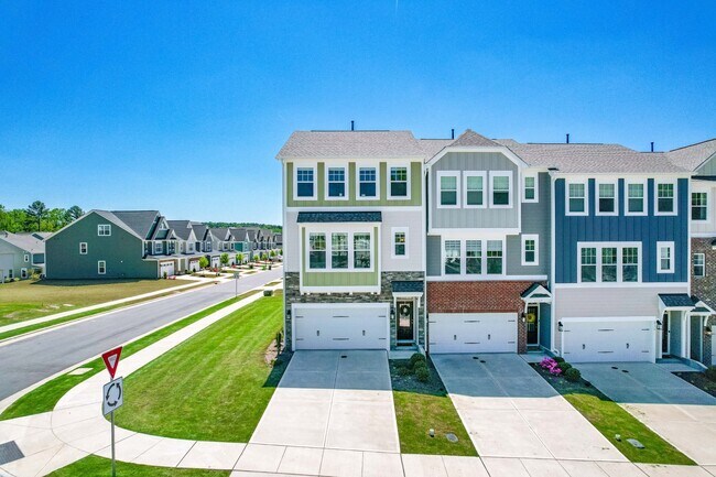AVAILABLE FOR RENT 5/1/2026 Move-in ready, north-facing end-unit townhome in the highly desirable Friendship Station! This 4-bedroom, 4-bath, 2,379 sq ft home boasts luxury vinyl hardwood floors, Quartz countertops, a bright open layout, and a spacious primary suite. Modern upgrades include ceiling fans, double racking in the primary closet, window treatments, plug-in garage storage for a fridge or freezer, and a Tesla charger—perfect for tech-savvy living. Corner lot, low-maintenance exterior, and direct access to the community amenity center with pool, playground, and pavilion with grills. Just minutes from Apex Friendship Schools, scenic trails, and shopping. Your next home awaits—schedule a showing today!