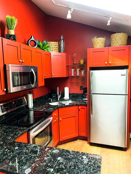 This apartment has a luxury feel to it with a vintage barn down for the master bedroom. High ceilings with custom lighting, soft closing cabinets, laundry room and more.