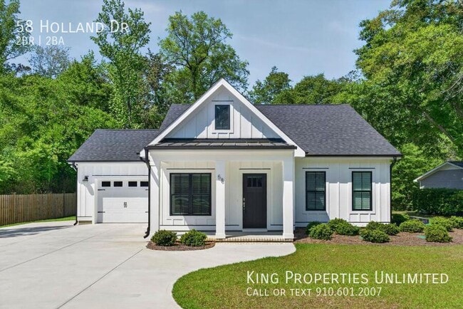 Available Now! Welcome to 58 Holland Drive, Castle Hayne, NC 28429 - a stylish modern farmhouse offering the perfect blend of comfort, convenience, and peaceful rural living just a short drive from Wilmington. This beautiful home features 2 spacious bedrooms and 2 full bathrooms in approximately 1,482 sq ft of thoughtfully designed living space. The open-concept living area is flooded with natural light and finished with durable LVP flooring throughout the main areas. The gourmet kitchen boasts solid surface counters and premium soft-close wood cabinets. Enjoy relaxing on the large covered front porch, take advantage of the one-car garage plus ample additional parking, and appreciate the nearly half-acre lot in a quiet, serene neighborhood. Rent includes lawn care and septic service - less for you to worry about! This low-maintenance, modern retreat is perfect for those seeking peaceful living close to schools, shopping, major highways, and the Carolina coast. Strict NO PET policy. Applicants must have a credit score of 680+ (elevated requirement for qualified tenants). Available now at $2,200/month (competitive pricing for this upgraded property in the area). Contact us today to schedule a self-guided tour - Your peaceful modern farmhouse awaits in Castle Hayne! Year Built: 2025 Rental Assistance: No Fifty-five plus: No Multiplex: No