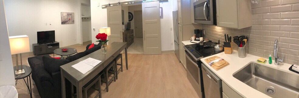 Feel at home in this 1-bedroom apartment in the heart of Ballantyne, Charlotte, NC. This brand new property has all the conveniences and luxury amenities. This well-appointed and tastefully decorated apartment provides comfort and function. It boasts a 55" flat screen TV and a large and spacious patio overlooking the pool. Property amenities include a rooftop lounge with expansive indoor/outdoor entertainment, a resort-style saltwater pool with sun shelf, a morning coffee bar, a business center with co-working space and private conference area, an indoor spa with heated pool and sauna, an expansive gym with strength, cardio, and cross-training gear, a club room that opens up to the pool plaza, multiple landscaped courtyards with entertainment spaces, a pet spa and private dog park, multiple outdoor kitchens with gas grill stations, keyless fob entry, steam rooms and private massage/meditation room, a private fitness/training room, a resident game lounge and speak easy, private parking in a connected parking garage, a rooftop wine & dine lounge, an expansive outdoor lounge with custom fireplace, poolside cabanas, and wet bars with wine refrigerators. Pets are permitted for a fee of $8.00 per pet per day, not to exceed $300.00 per pet. Towerview Ballantyne is the newest and most ambitious luxury living high rise apartment property in Charlotte. Wake up and take the elevator to the 2nd floor to enjoy free coffee from the barista machine or cold brewed. Grab a quick workout in their state-of-the-art fitness center and a sauna before heading back to your apartment to check email and shower off in the spacious walk-in. Guests are required to complete an Occupant Information Form which requests personal identifying information which is provided to the property management office for their occupant records. The age requirement is 21 and over to book and is strictly enforced. Pets are limited to two, and there will be an $8.00/night/pet fee not to exceed $350 per pet based on length of stay. Breed restrictions may apply. [SI]