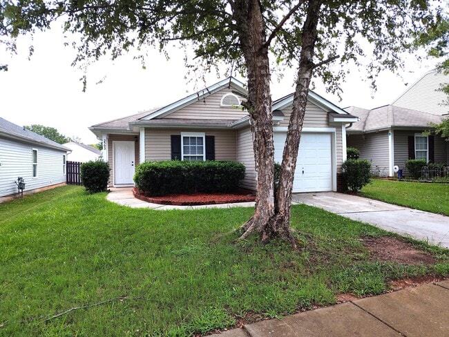Move-in ready ranch style home just minutes from Reedy Creek Nature Preserve with trails, sports courts, fields, + playgrounds. Enjoy the quick access to the university area, hospital, restaurants, shopping, and easy access to I-85/I-485 for commuting. This home welcomes you with an open great room with vaulted ceilings. Good sized kitchen with ample cabinet space. The primary bedroom has its own private bathroom and walk-in closet. Good sized secondary bedrooms and a hall bathroom. You'll appreciate the convenience of an attached 1 car garage. Guest parking lot directly across the street. Fresh neutral paint and new luxury vinyl plank throughout. Tenant is responsible for all utilities and lawn care. No smoking inside. Renter's insurance required. $350 pet fee per approved pet - must be approved by owner- no aggressive breeds.