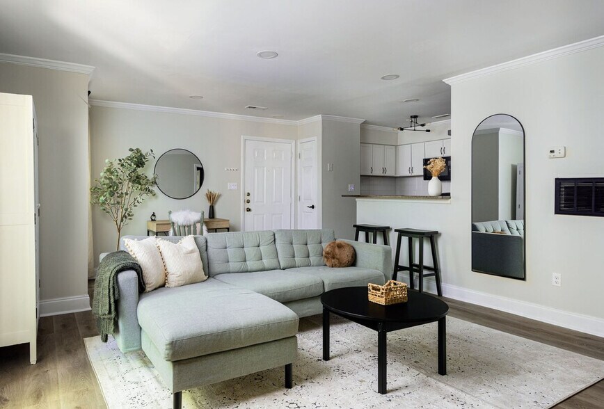 Feel at home in this centrally located urban oasis in Midtown Charlotte. This 1-bedroom apartment is less than 10 minutes from Uptown, The Bojangles Coliseum, Bank of America Stadium, and Spectrum Center. This newly renovated apartment offers a peaceful atmosphere and is fully equipped with a king-size bed, electric fireplace, private balcony, and a fully equipped kitchen. Enjoy high-speed 5G Wi-Fi, guest-controlled heat and air, a coffee bar, a comfy couch, a hair dryer, a steamer for clothes, a washer/dryer, ample closet space, and 55-inch TVs in both the bedroom and living room with access to Netflix, Hulu, and HBO Max. Free parking is available. Enjoy access to the shared community pool. The apartment is a short drive to the airport and less than 10 minutes to Panthers Stadium, Bojangles Coliseum, Spectrum Center, and The Fillmore. The apartment is close to popular date spots and restaurants. Includes a desk. [SI]