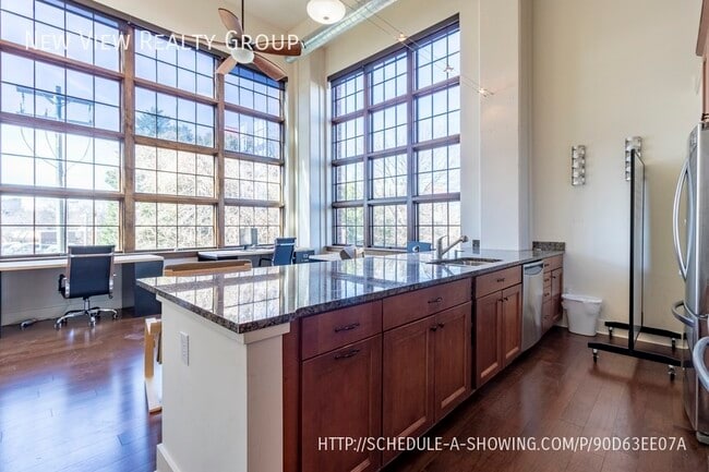 715 North Graham Street, pt 210, Charlotte, NC 28202 MOVE-IN SPECIAL- Move in this month and enjoy $200 off for 1st three months and then back to the original rate of $2200 for the remainder of the lease* LOCATION! LOCATION !! LOCATION!!. Come take a look at this stunning 2 bedroom, 2 bath loft located at the desirable Garrison at Graham in Fourth Ward. This gorgeous corner loft boasts 20' windows that bring in plenty of natural sunlight and city views. The 1st floor features a spacious secondary bedroom, full bathroom, W/D included, kitchen and spacious Living area The 2nd level features an open loft primary suite with huge walk-in closet, primary bathroom with separate tub and shower! The open kitchen features granite countertops, tile backsplash, an oversized island with plenty room for everyone. Upgrades include laminate flooring throughout (except bedrooms) granite in kitchen and bathrooms, updated light fixtures and much more. The rooftop terrace has an expansive outdoor living space equipped with televisions, fireplaces, appliances, a full bar, and comfortable outdoor seating perfect for entertaining family and friends. This Oasis is located just minutes to Bank of America Stadium, Truist Field, Spectrum Center, and tons of restaurants and entertainment. This one won't last!! Preliminary approval from New View Realty during the application process before required HOA approval (which can take up to 35 days) Please plan your move-in accordingly. Additional fees from the HOA apply for this property (separate from move-in funds requested to lease): $300 Refundable security deposit and a non-refundable Move-in fee of $300, paid by check to the HOA. Pet fee: $300 per pet. Contact us to schedule a showing.