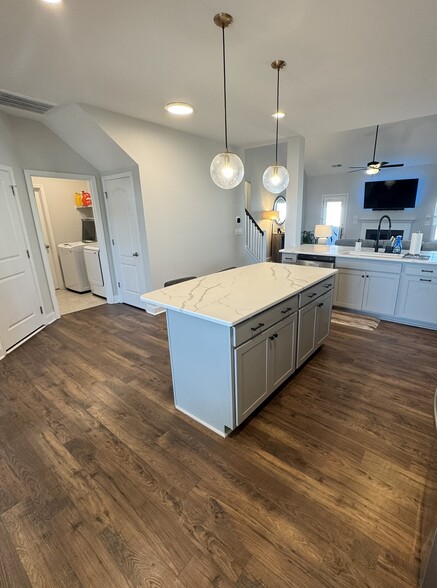 AT A GLANCE: o 4 BR / 2.5 BA (2,442 SQ FT) o Built 2023 o Quartz kitchen + island o Smart thermostats + security o Ultra-high speed internet (fiber optic) o Fenced yard + garage o Pond & gated access FULL DESCRIPTION: Perfect for the military family or working professional, this practically-new 4 BR / 2.5 BA home (built in 2023) offers easy access to the Fayetteville Outer Loop - just three minutes away. Fort Bragg is an easy 17-minute drive. Located in a quiet, family-friendly neighborhood, the home is minutes away from top-rated Jack Britt High School and Stony Point Elementary. Open-concept main floor features a bright kitchen with white quartz countertops, a large central island, and modern finishes throughout. All major appliances were purchased in 2023 and are well-maintained. Home includes a fenced-in backyard. Comfort and convenience are built-in with central heat + A/C, Ecobee smart thermostats, and a professionally monitored security system with app-based control. Residents enjoy access to Upchurch Pond and a gated dock (key card provided). Home is professionally managed. Minimum lease duration is nine months. No smoking inside the home. Pets are considered on a case-by-case basis, with approval subject to pet screening, additional deposit, pet rent, and signed pet addendum. Tenant responsibilities: o Maintain general cleanliness of the home o Replace HVAC air filters as needed o Basic lawn care o Report maintenance issues promptly