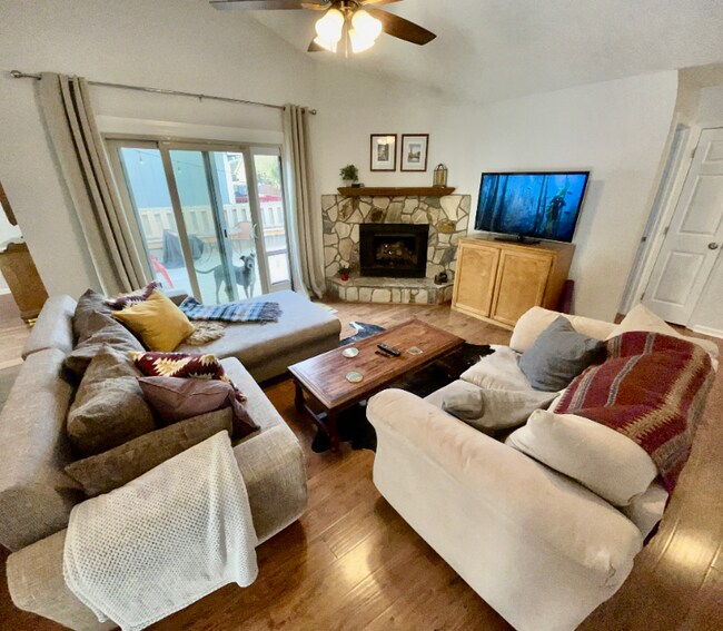 Property Id: 1651221 Fully furnished house with owner's suite with queen bed,ensuite & walk-in closet. Guest bedroom has full size bed, TV & generous closet. 3rd bedroom is available as storage for tenants. Kitchen is fully stocked with pots, pans, plates, & utensils and is ready for meal-prepping for busy tenants. Kitchen entrys have gates available so Fido won't be tempted by the pantry! Living room has 56" SmartTV with AppleTV, including SlingTV access & a cozy fireplace. A large patio is accessible off the living room, with large dog-door & fully fenced backyard. Patio area has multiple sitting areas & propane grill for tenant's use. Samsung washer & dryer are available in the garage. Storage available in the garage on the cat walk. Lawn-care is provided & included in the rental price. Garage available for tenant ise. $1,950 deposit for credit scores $650+. Refundable pet deposit $250. $250 cleaning fee per stay. Lease options mnth-mnth, 3 mnth, 6 mnth. 3x rental income & background check required.