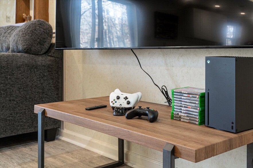 Gather your crew and feel at home in this entertainment-packed home in High Point! Perfect for family vacations, reunions, or celebrations, this spacious retreat sleeps 16 and features a game room, karaoke, and more, all designed for nonstop fun and relaxation. This 3,800 sq ft private estate sits on 1.7 acres. The kitchen is fully stocked for at-home baking and cooking and includes cooking oils, seasoning essentials, a drip coffee maker, kettle, blender, rice cooker, stand mixer, waffle maker, toaster, an abundance of dishware, glassware, silverware (including children’s), a full-sized fridge and freezer, an induction cooktop, and a dishwasher. The dining room table seats 10, and there is also a breakfast table that seats 6, as well as high chairs. The living room features a massive smart TV with access to Netflix, Prime Video, Disney Plus, Hulu, and HBO, a sound system, an upright wooden piano, a luxurious velvet couch, and a bar counter with high chairs. The game/recreation room in the basement includes a massive smart TV with access to Netflix, Prime Video, Disney Plus, Hulu, and HBO, a sound system, an Xbox gaming console, ping pong, a pool table, air hockey, a Dragon’s Lair arcade game, a private kitchenette, a dishwasher and sink, a microwave, a fireplace, a large sectional leather couch, an L-shaped couch, and a bar counter with high chairs. Outside, enjoy the fire pit with seating, a children’s swing, a 6 ft deep elegant swimming pool (open during Summer), poolside lounge chairs, and a poolhouse with pool toys and life vests. The 2nd-floor porch features a screened porch with access to the deck, a comfortable outdoor sofa, outdoor dining for 10, a Blackstone propane griddle station, a smaller propane grill, an outdoor sink, and an extra table. Private chef and room service options are available with advance notice; message us for pricing and availability. Nearby attractions include DeBeen Espresso (4 min), Joy Bar Coffee Co. (5 min), Panera Bread (6 min), Starbucks (6 min), Dot & Pearl’s Coffee & Bakery (7 min), High Point University / Qubein Center (8 min), Penny Path Café & Crêpe Shop (9 min), Lil’s Coffee Bar (10 min), High Point City Lake Park (10 min), Piedmont Environmental Center (10 min), High Point Museum & Historical Park (11 min), High Point Theatre / Theatre Art Galleries (12 min), Bienenstock Furniture Library (12 min), Market Square Showrooms (12 min), Congdon Yards / COHAB Space (13 min), O’Henry Hotel / Stock + Grain Food Hall (14 min), Magnolia Blue Southern Kitchen (14 min), Odeh’s Mediterranean Kitchen (15 min), The Biscuit Factory (15 min), High Point Community Theatre (15 min), A.J. Simeon Stadium (15 min), Uptown Suburbs Historic District (16 min), Furnitureland South & Ashley Interiors (20 min), North Elm Street Galleries & Shops (20 min), Greensboro/Winston-Salem Attractions (30 min), and DuPont State Forest (2 hrs). [SI]