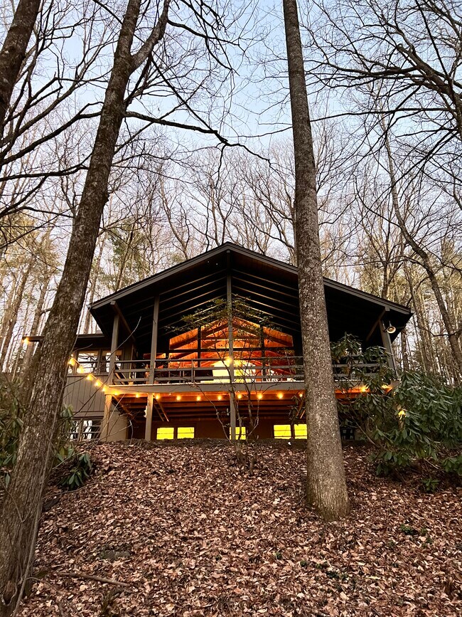 **Rented all summer & fall 2024. Available again starting in the winter.** **We are most interested in a scenario of renting to someone for a set 3 or so weeks out of each month of the year for those who want to be in / have access to Highlands year round and to allow our family use it some too. This would be ideal for someone who doesn't want to live in Highlands full-time, but wants to spend time in Highlands during all 4 seasons at one location on predetermined dates, keep things at the house between trips, and pay a very discounted rate compared to AirBnbs/hotels/etc. A large, locked closet would be available to leave things between trips. All utilities included with this scenario and would have first dibs on high season - summer 2025 months. We are also flexible on lease periods for a 1 to 6 month rental for those looking to be in Highlands for a shorter period of time (i.e. someone building/renovating a house, looking at property, someone who wants to be here during one season, etc). ** Property Details: Fully furnished, 3 bedroom, 2 bath chalet-style mountain cabin 10 minutes south of downtown Highlands. Location is a small, very quiet, 12-home mountain neighborhood with no immediate neighbors on any side. The majority of the home & exterior areas have been recently renovated. Oversized 30-ft covered outdoor deck with 15-foot vaulted ceiling with winter view of the mountains / summer views of the forest. Deck has gas grill, seating areas, and outdoor dining table & chairs. Property backs up to land trust with trails / exploring, and area that adjoins U.S. Forestry land. Large outdoor fire pit area, lounge area, stonework, bistro lights, cocktail/food serving area. Main living area consists of 15-foot tall wood ceilings, a large wall of windows overlooking the outdoors, wood-burning brick fireplace, original pine hardwood floors, dining area, two leather couches, and small kitchen. Two recently renovated bedrooms (both queen beds with new mattresses) and one bathroom (also renovated) with rainfall shower head. Basement level consists of open space including queen bed, couch, very small bunk room with bunk beds, laundry area with washer & dryer, and full bath.