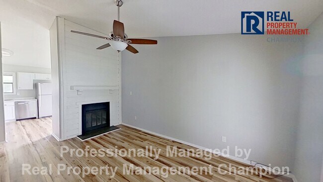 Fabulous 2 bedroom / 1 bath duplex featuring beautiful wood-like LVP throughout. The living room offers a vaulted ceiling with ceiling fan and decorative shiplap wall with wood burning fireplace. The eat-in kitchen offers pretty cabinets, ample counters, spacious pantry, and access to the covered back patio with storage closet and backyard. Stainless-steel appliances include a refrigerator, dishwasher, built-in microwave and glass cook top range. The bedrooms are generous in size and include ceiling fans with light fixtures and double bi-fold door closets. The full bath features a single sink vanity and a tub/shower combination. The laundry closet is in the hallway between the bedrooms and includes a washer and dryer. Additional features include a covered front porch, ceiling fans, window blinds, and off-street parking. This home is conveniently located near shopping, dining, schools, parks and bases. Virtual Tour: Schedule a Showing: We are an Equal Housing Opportunity Management Company and abide by the term of the Federal Fair Housing Act. Pets negotiable. Prior approval and required pet fees. Aggressive breed list may apply. Contact listing agent prior to submitting application. No Smoking, e-cigarettes or vaping. All applicants over 18 years of age are subject to a background check, including criminal, credit, employment verification, and past tenancy.