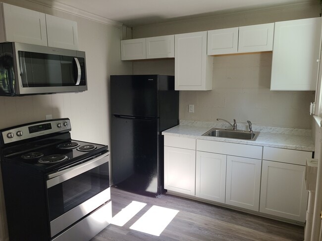 Quiet street with two parking spaces. Completely renovated unit with breakfast nook, washer dryer hookup, new appliances, LVP flooring, kitchen cabinets, bathroom vanity, high efficiency HVAC system and light fixtures.