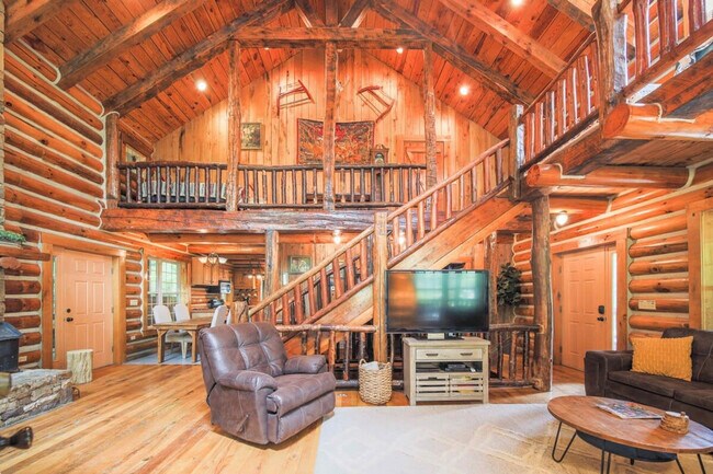 Nestled on a private road, this stunning cabin offers everything you need for an amazing vacation in Mars Hill, NC. With a prime location, this cabin features a stocked fishing pond, private gazebo, wrap-around decks, screened-in porch, large hot tub, fire pit, game room with ping pong and pool table, corn hole and horseshoes pits, board and card games, outdoor patio and dining area, BBQ grill, fully stocked kitchen, family and dog-friendly amenities, washer and dryer, and ample parking. Welcome to your ultimate mountain retreat at Black Bear Drive. Discover the perfect blend of comfort, space, and serenity with this unique property in scenic Mars Hill, North Carolina. This home offers 9 bedrooms and 6.5 bathrooms, comfortably accommodating up to 30 guests. Whether you're planning a family reunion, a friends’ getaway, or a multi-family vacation, this mountain haven has the space and flexibility to bring everyone together without sacrificing comfort or privacy. Enjoy breathtaking mountain views, cozy indoor living areas, fully equipped kitchens, and ample outdoor space to relax and reconnect with nature. Up to 2 dogs are allowed for $125 per stay. Parking is available in the driveway for up to 10 cars. With shared access to nearby hiking trails, year-round activities, and peaceful mountain air, this is more than a stay—it’s an experience you’ll never forget. Nearby attractions include Hatley Pointe Ski Resort, Southern Appalachian Repertory Theatre, Bailey Mountain Bike Park, Big Bald, and the Appalachian Trail at Sams Gap. Enjoy local dining at Stack House, The Original Papa Nick’s, Jimmy’s Munch Box, Wagon Wheel, and Taco Fiesta. Check-in is at 4pm and check-out is at 10am. A 4-wheel drive vehicle is required to access the property, especially during rainy or snowy conditions. No parties are allowed, and violations may result in immediate termination of the stay. An exterior camera is installed solely to monitor our cleaning team for quality and security purposes. Guests must be 21 years or older to book this property. Outdoor pools in North Carolina typically close for the season in October. Availability may vary depending on weather conditions and property-specific maintenance schedules. Wi-Fi is provided, but please note that due to the mountainous location, Wi-Fi can be spotty. Streaming or video/conference calls are not recommended during your stay. [SI]