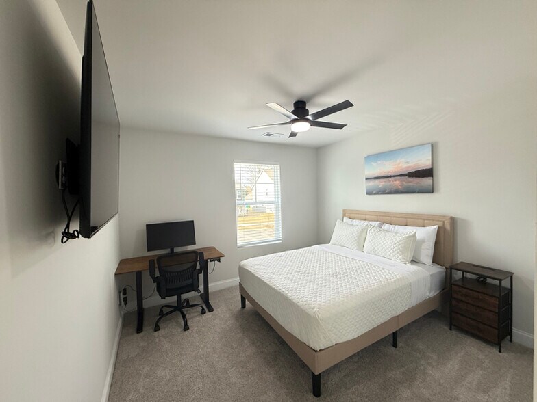 The Willow Room is a furnished bedroom available in a newly built home (2025) located in Matthews, NC.