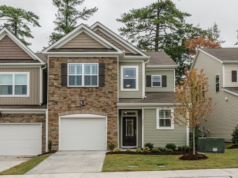 This freshly painted end-unit townhome for rent in Morrisville offers a spacious layout and a truly move-in-ready living experience with a one-car attached garage and additional driveway parking.