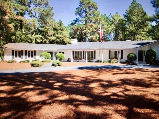 Fully furnished 3500sq ft one level white brick home with large fenced in backyard. Flexible lease 6 to 12 month or longer. Great location less than a mile from the historic Pinehurst Village. Formal dining room and a lovely eat in kitchen with a view. Two patios in the back with plenty of wrought iron patio furniture perfect for cookouts or just relaxing outside. Large family room a perfect place for playing games or relaxing. Large bonus/game room can be used as a 4th bedroom. 2 fireplaces, 2 car garage, fire pit and lots more! Please feel free to message us with any questions. We provide all the linens, towels and blankets. Fully stocked kitchen complete with expresso maker and crockpot. Handicap accessible with a newly installed handicap ramp. Washer and dryer. Plenty of parking. Ping pong table in the garage. Beautiful and peaceful neighborhood.