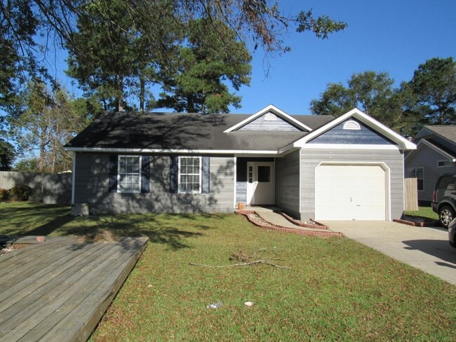 Welcome to this charming 3-bedroom, 2-bathroom home located in the desirable Midway Park, NC. Nestled on a cul-de-sac, this property offers a sense of community and convenience. The home features a fully equipped kitchen with an electric range, refrigerator with ice maker, dishwasher, and garbage disposal, making meal prep and clean-up a breeze. The covered back patio provides a perfect space for outdoor relaxation or entertaining. The home also includes a 1-car attached garage, providing additional storage or parking space. Washer and dryer connections are available for your laundry needs. This home combines comfort, functionality, and location, making it a perfect choice for your next move. No Virtual Tours. No Smoking. Pet friendly with pet screening and non refundable charges apply. Application charges apply.