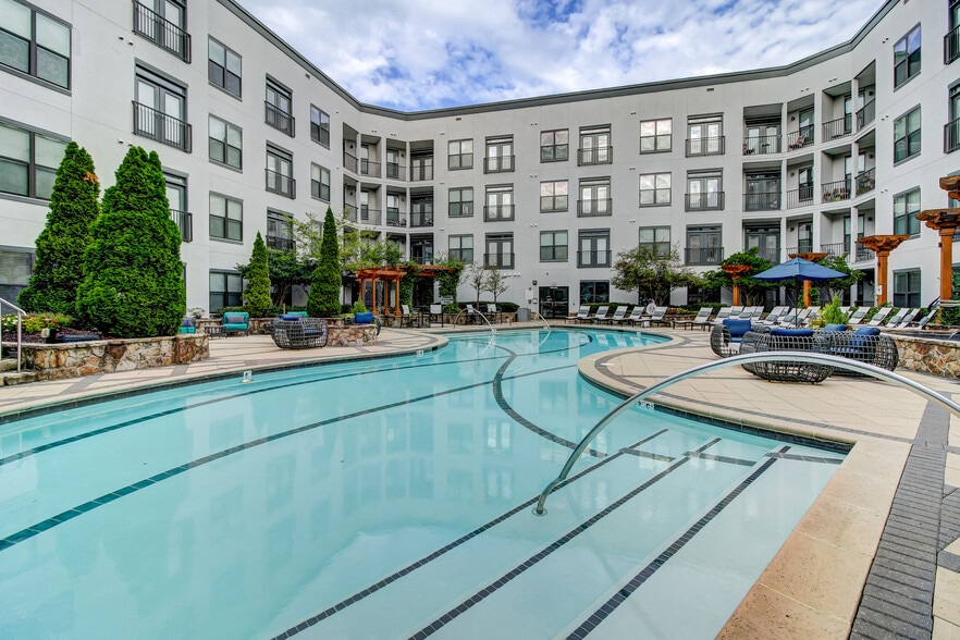 Park and Market brings sophisticated urban living to the heart of the North Hills Park District, offering thoughtfully designed studio, one , and two bedroom apartment homes with nine foot ceilings, hardwood plank flooring, stainless steel appliances, granite or quartz countertops, kitchen islands, Juliet balconies in select homes, and in home full size washers and dryers. Many residents also enjoy Midtown Park views, creating a bright, elevated living experience. The community s amenity collection supports both relaxation and connection, featuring a resort inspired swimming pool with poolside firepit, courtyards and outdoor grilling stations, and a clubhouse with game room and coffee bar. Active residents benefit from a state of the art fitness center equipped with Peloton bikes and The Mirror, while pet owners enjoy an off leash bark park and pet friendly living. Additional conveniences include indoor gated parking, controlled access buildings, elevator service, and a Fetch package delivery system, all within walking distance of shopping, dining, entertainment, and green space throughout North Hills, making Park Market a seamless blend of luxury and location.