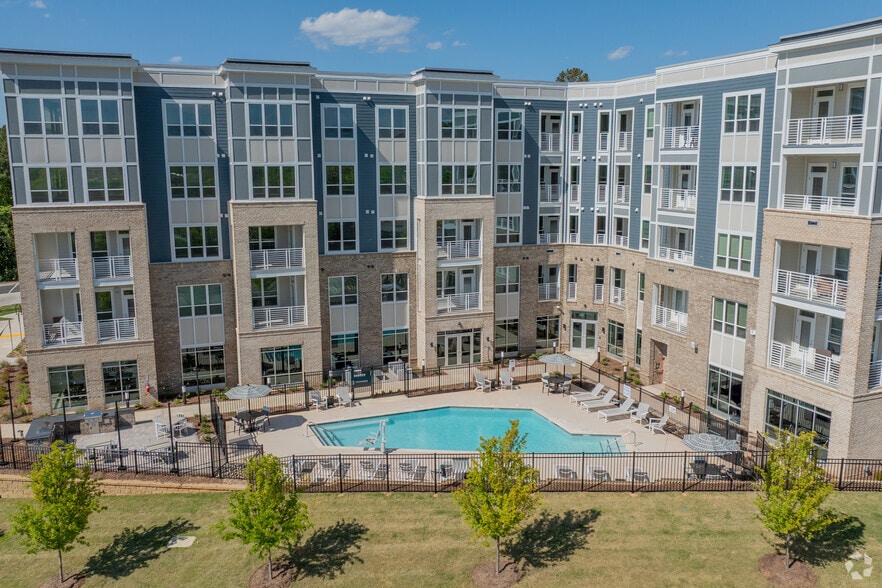 Wakefield Station Apartments in Raleigh, NC, offers modern studio, 1-, and 2-bedroom residences with luxury finishes and smart technology. Each unit features in-unit washer/dryer, keyless entry, and energy-efficient appliances. Community amenities include a resort-style pool, 24-hour fitness center, yoga room, pet spa, Amazon Hub lockers, and electric car charging stations. Conveniently located near Harris Teeter and UNC REX Healthcare Wakefield campus, Wakefield Station combines comfort and convenience in a vibrant North Raleigh setting.