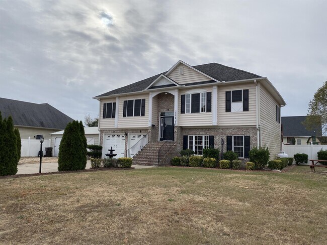 Lots of space in this Split Level home located in THE SUMMIT of Harnett County. This home sits on a large lot on a cul-de-sac. The backyard has a top deck, 2 sheds and Double carport large garage. NO Carpet and Freshly painted Walls. The main level is located upstairs and has a large living room with vaulted ceilings, laminate floors and a gas log fireplace. There is a dining area and large eat in kitchen. The kitchen has stainless steel appliances, lots of cabinets, tile floors and 2 pantries. The top level also 3 Bedrooms. The owner suite has laminate flooring, access to a private balcony, bathroom with Jetted tub, Tile shower and double sinks. 2 more bedrooms upstairs with laminate flooring and a full bathroom. Downstairs you will find a large bonus area, and access to the backyard. The 4th bedroom is also downstairs and has a walk in closet and full bathroom. One small pet permitted with approval and non refundable pet fee. Applicants MUST view the home before applying. All adults must submit an application. PM Lauren