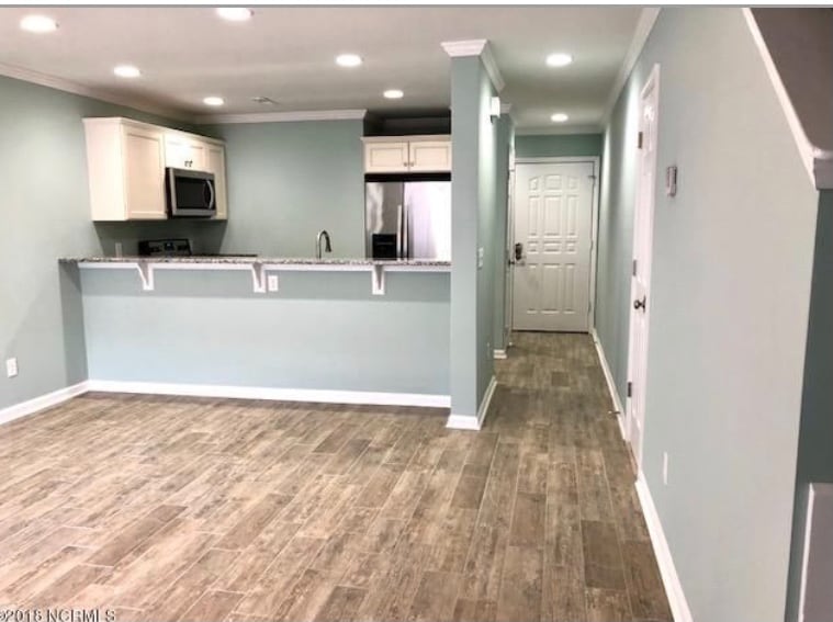 This unique condo boasts 3 bedroom/bathroom suites. Two suites are upstairs and the third is downstairs. The front entry has a small porch. The patio has a garden area. There is a storage unit off the patio for tenant use. Washer and Dryer are upstairs. Tile floors in the common space. Carpet on the stairs and in the bedrooms. The kitchen has granite countertops and stainless appliances. This property is minutes to most all points in Wilmington. Walking paths to Roland Grise Middle School and John T. Hoggard High School.