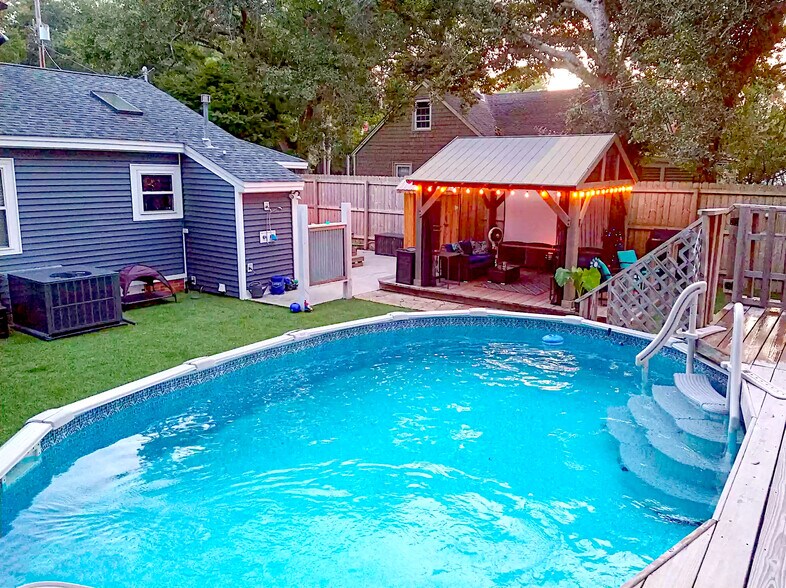 The backyard oasis includes all you need for relaxed living - a beautiful above ground pool, Life Smart hot tub, Burlington infrared sauna, outdoor shower, and artificial turf for easy upkeep. The large pergola offers a retreat from the sun and mood lighting for quiet evenings.