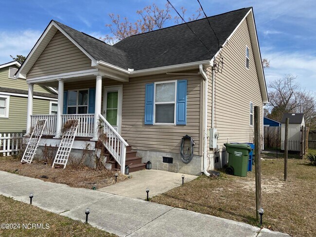 You will fall in love with this cute 3 bedroom 2 full bath cottage located within minutes to everything downtown Wilmington has to offer! When you enter the front door you will find hardwood floors throughout the living spaces and bedrooms. The kitchen boasts granite countertops, stainless steel appliances including a stack washer/dryer unit and an oversized island with plenty of cabinet and counter space for all your cooking needs. Downstairs you will find two bedrooms which share a full bathroom. Upstairs, a spacious primary bedroom with great size bath and large walk-in closet. Out back you will find an excellent, low maintenance outdoor space with a large wooden deck and a cozy fire pit concrete patio and storage shed. This great property is in close proximity to the Brooklyn Arts District, the Riverfront Park and Amphitheater and or course our award winning Cape Fear Riverfront that boasts many fabulous eateries, bars & great nightlife that you deserve. Call to book a tour today. This rental will be available to rent on 2/19/24, don't delay, it'll be gone before you know it!