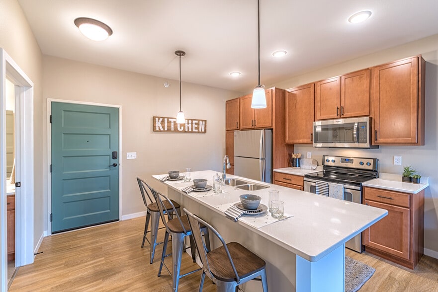 Style meets convenience at The Edition with studio, one-, two- and three- bedroom open-concept floor plans. Each unit is complete with pendant lighting, quartz countertops, wood-inspired flooring and in-home washer and dryer. Area walking and bike paths, a fitness center, and pet spa provide ease and enjoyment for residents.