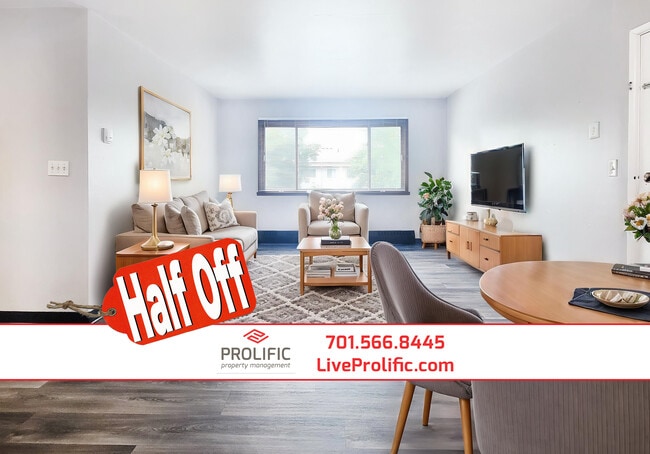 Heat paid, pet friendly, large grass courtyard, playground, off-street parking, laundry on-site, parking plug-ins, across the street from NDSCS campus, 5 mins from Walmart.