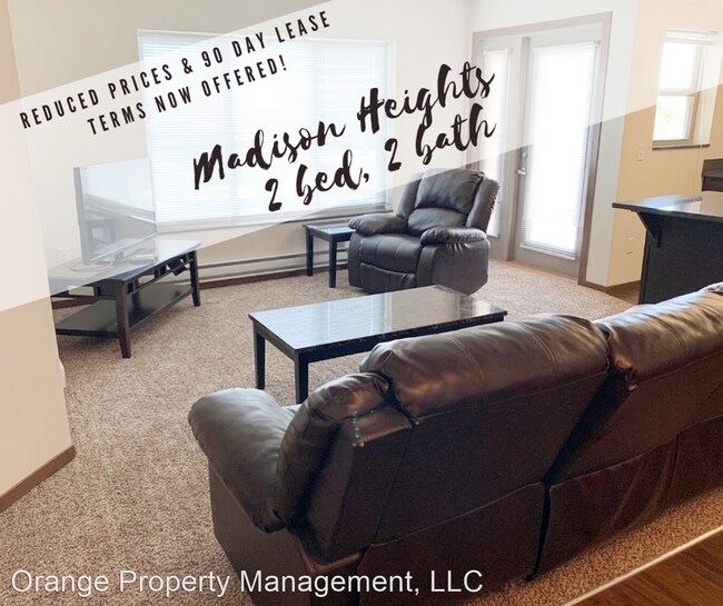 +1 (701) 575-9900 - Spacious Corner Unit in Upscale Madison Heights on North Main - PRICES REDUCED! Take advantage of our AMAZING prices and ask us about our new 90 day lease offer! Say goodbye to long leases and hello to the comfort-ability of a 3 month lease!! This beautiful 2 bedroom, 2 bath apartment is now available! Granite countertops, in-unit laundry, stainless steel appliances, one-car garage, and private balcony are all included. The North Main location is quiet, has incredible views, and is away from the traffic. This unit has two bedrooms and two bathrooms with beautiful finishes and plenty of storage. Kitchen includes fridge, microwave, garbage disposal, and range. Granite countertops and gorgeous dark woodwork complete the upscale feel. Residents at Madison Heights also have access to the 24 hour fitness center. Water, sewer, garbage included. All other utilities are the responsibility of the tenant. Madison Heights Apartments are professionally managed, so move-ins are streamlined and easy. Apply online today and move in tomorrow. 1, 2, and 3 bedroom furnished and unfurnished apartments available. Online applications and payments make moving a snap. Dogs allowed in some units (RLNE3783196) Other Amenities: Parking, Other (1 stall garage, granite countertops, secure building, private balcony or patio), Exercise Facility. Pet policies: Small Dogs Allowed, Cats Allowed, Large Dogs Allowed.