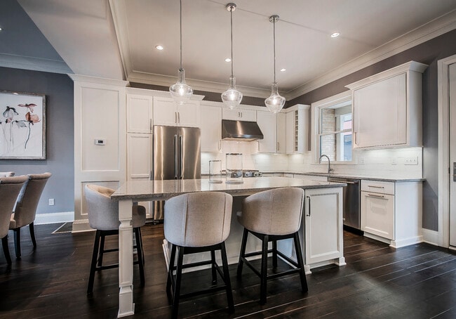 Luxurious, new build, contemporary, 3-story, brownstone Short North & Victorian Village townhouse with attached 2-car garage for rent located one block off of Short North and High Street. It is an end unit and includes 2008+ square feet of living space with 3 bedrooms and 3.5 baths with the 3 full bathrooms attached to each bedroom. There are tons of premium upgrades. Every finish is high end from triple-layer, custom crown molding and 10-feet ceilings in the main living space to the stainless steel Kitchen Aid appliance to the custom built-in microwave drawer in the over-sized island (51 x 93 inches). Gorgeous granite countertops and classic subway tiles in kitchen and bathrooms. Premium wide plank walnut wood flooring throughout the main floor. Upgraded with bar area and dedicated beverage fridge adjacent to the kitchen. The home is smart-home connected with a digital front door lock, garage door, and thermostat that can all be controlled from your phone from anywhere. The open, modern floor plan creates a wonderful space with tons of natural sunlight. There are custom $1000 blackout blinds in the master bedroom for sound sleeping. There is a 240v electric car charger in the attached 2 car garage. Breathtaking exterior designed to emulate Victorian homes with private steps leading up to the home, iron railings by Fortin Ironworks, and premium build for superb sound proofing between units. Private balcony with hookup for gas grills and fireplaces. This one of a kind, unique property is located just a block from High St and steps away from all of the superb restaurants, coffee shops, retail boutiques, bars, and amenities in the rapidly growing and blossoming Short North Arts District in Columbus, OH. It is far enough to avoid the noise and traffic yet close enough to walk nearly anywhere. Perfect central location is within minutes of downtown, Ohio State, Grandview, Italian Village, German Village, and Clintonville. Get to all the major highways within 5 minutes. Central location means reverse traffic to the suburbs. It is nearly impossible to find a similar rental in this area with these features! Rent includes snow and trash removal and recycling pickup. Preference given to longer leases such as 2 years or more. Fully-furnished option is also available. Please contact us to learn more! The official website for this exclusive, 10-unit development is 3D matterport and walkthrough - Additional videos -