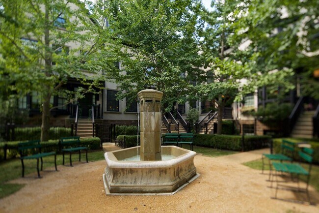 Rare 1br/1ba 'garden flat' in 'Park' phase of Neighborhood Launch along mature tree-lined Gay Street in the heart of Downtown Columbus,steps from shops,restaurants,Capitol Square,CCAD,and Capital Law School. Also a short commute to all downtown offices and popular attractions (Arena District,Short North,Scioto Mile Riverfront,German Village,Discovery District,and the new 'Capital Line',etc.). Private entrance from sunken patio off of stunning fountain courtyard. Hardwood floors throughout,bright modern open floor plan,eat-in kitchen w/high-end fit & finish,dedicated dining or home office area,private bedroom w/full bathroom accessible directly from bedroom AND hall outside of bedroom. New full-size W/D in utility closet at rear foyer,which exits toward detached 1-car garage behind. Optionally available furnished (ask for details). Perfect for medical residents,faculty/students at nearby colleges,relocations,etc.