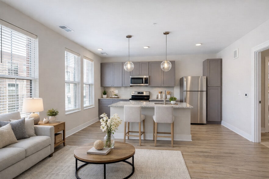 Enjoy upscale finishes like quartz counters, stainless steel appliances, luxury flooring, and in-home washer and dryer — plus a state-of-the-art fitness center, complimentary coffee bar, secured private parking garage, and Creole Kitchen, a locally owned Creole-inspired restaurant right on your first floor.