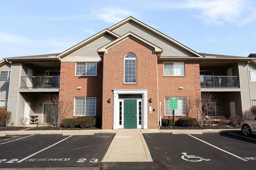 This beautiful 2 Bedroom / 2 Bath condo is a single-story floor plan featuring a spacious Great Room with a fresh paint, new carpet and new flooring. This spacious open concept condo offers vaulted ceiling & sliding door to the covered balcony/deck. Dining Area, open Kitchen with white cabinets, breakfast bar counter, stainless steel appliances, & in-unit Laundry Room. Handy built-in media/work station. The Owner's Suite features a large walk-in closet & private Bath. 2nd bedroom is on the opposite side of the living area, with a walk-in closet & adjacent full bath. Reserved parking space & plenty of additional parking. This outstanding community is in a quiet neighborhood and enjoy all the community has to offer including clubhouse, fitness center, pool, and a pond area with green space including walking paths and a fenced dog park! Lots of parking! Located in the desirable school district of Olentangy city schools with easy access to 23 and Polaris parkway, Polaris Mall, lots of restaurants and shopping nearby.