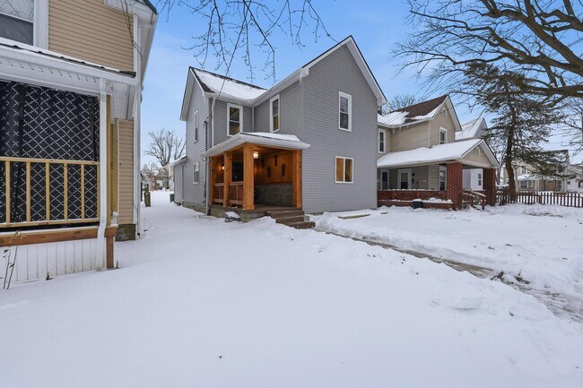 Experience brand-new construction in this completely rebuilt 4-bedroom,2.5-bathroom home. Located a short walk from Downtown Marion and minutes from Marion General Hospital,this ''studs-up'' renovation offers high-end finishes and total peace of mind. The open floor plan features hand-scraped hardwood floors,a custom fireplace wall,and a gourmet kitchen with Taj Mahal quartzite countertops and stainless steel appliances. The main level includes a convenient primary suite with a private full bath. Upstairs,you will find three additional bedrooms with new carpet and stylish barn doors. Every major system is brand new,including the HVAC,plumbing,electric,roof,windows,and siding. Enjoy the multi-level back deck,custom front porch,and off-street rear parking. The waterproofed basement provides excellent dry storage. A high-quality,worry-free home in a perfect location.