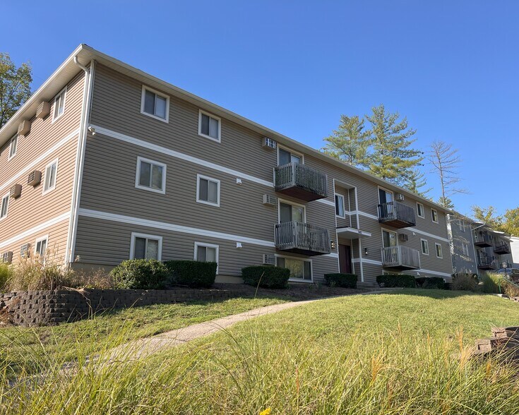 Owned and Managed by Harlyn Properties the Happy Hollow Apartments are located on a dead end quiet road very close to the intersection of State Route 50 and Rt. 131 in Milford OH just minutes away from Interstate 275. Happy Hollow has one and two bedroom apartments with with balconies that have great views of the surrounding woods and creek. The Happy Hollow Apartments are privately owned by owners with more than 35 years of leasing and property management experience. There are no resident managers there are no maintenance teams. All of your need will be taken care of by the owners. For leasing information please contact us. Thank you for your consideration. We are currently offering a top floor one bedroom apartment. The rent is $925 for single occupancy and will increase $25 with each additional resident with the limit of two occupants. Hot and cold water is included in the rent as well as sewage and trash fees. We do require one months rent as Security deposit. The apartment itself has wall to wall carpet in the bedroom and living room. There is coin operated laundry in the basement as well as extra storage for each apartment. We do not allow any dogs, birds, or reptiles. Cats are allowed with extra $200 pet deposit and a monthly fee of $25. Limit of 2 cats per apartment. If you would like more information or would like to set up a viewing please give us a call.