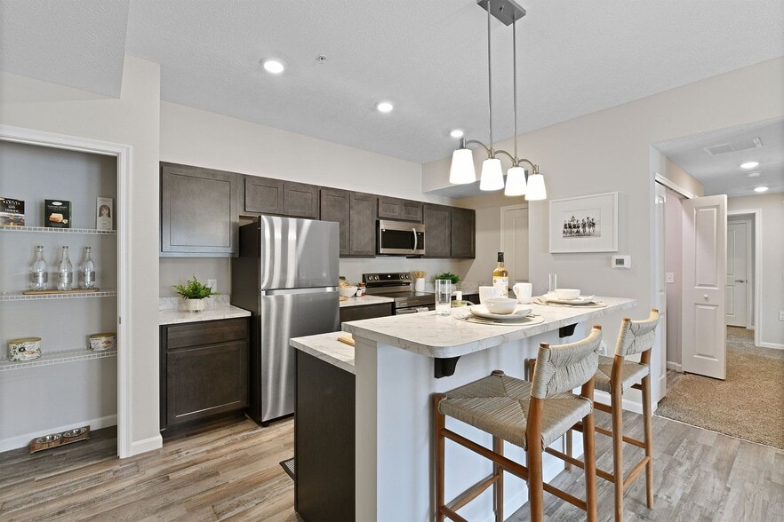 Welcome to Thornton Hall, a brand-new apartment community offering comfortable one, two, and three-bedroom apartment homes in Reynoldsburg, OH. Designed for everyday living, our pet-friendly apartments feature modern kitchens with dark wood shaker cabinetry, stainless-steel appliances, kitchen islands, and pantry storage. Enjoy practical details like walk-in closets, washer and dryer connections, wood-style flooring, and a private patio or balcony. Community amenities include an outdoor swimming pool, fitness center, gaming lawn, clubroom with entertainment space, movie theater, business center, and outdoor grilling areas. Thornton Hall is conveniently located near East Main Street with easy access to I-70 and I-270, placing top Columbus employers like Mount Carmel East Hospital, Amazon, and John Glenn Columbus International Airport within reach, along with plenty of shopping and dining options. Schedule your tour today to see what Thornton Hall has to offer!