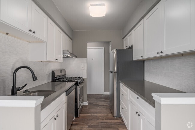 Beautifully renovated 2 story luxury apartment building with comprehensive hi-tech security. Stunning new features including stainless steel appliances, quartz counter tops, luxury vinyl flooring, shaker style cabinets, FREE Wifi included in the rent, wall AC unit, garbage disposal, your own furnace, tile bathrooms, etc.