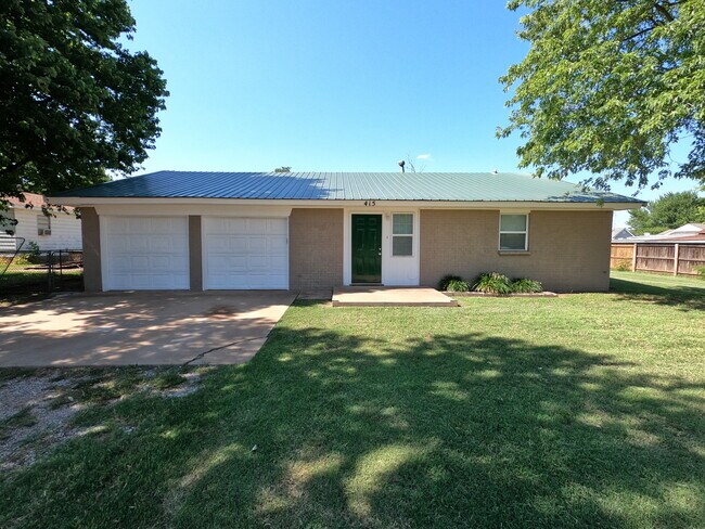 3 bedroom, 2 bath (one walk-in shower in primary bedroom, one bathtub/shower off of hall), 2 car garage, fully fenced backyard (with concrete porch slab) with bonus storage building